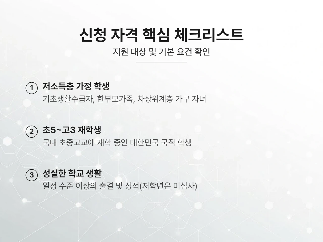 단순히 소득만 보는 것이 아니라 학생의 성실함도 함께 평가합니다. 학년별로 기준이 다르니 꼼꼼히 살펴봐야 합니다.