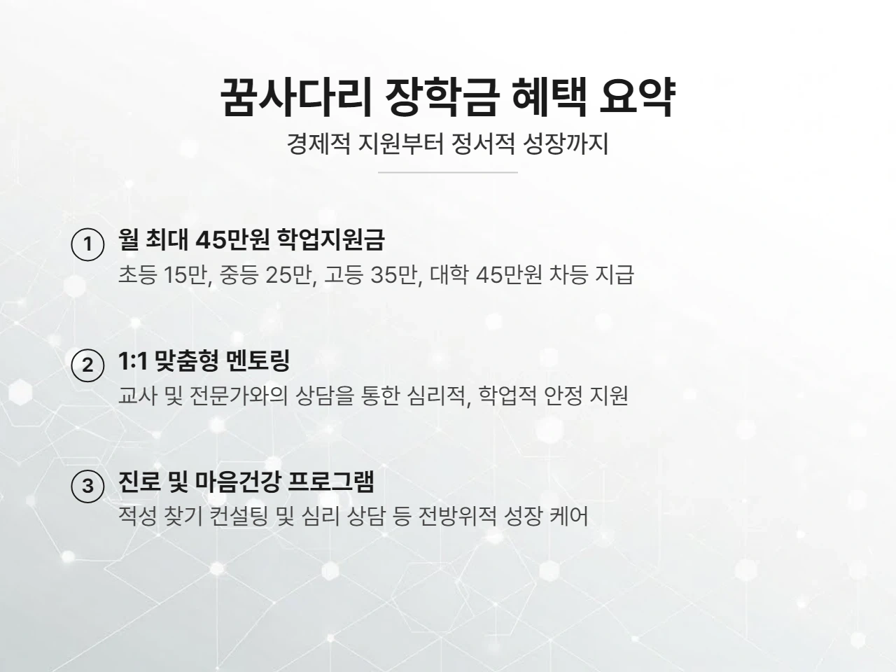혜택부터 확인하세요! 매월 최대 45만 원의 든든한 학업 지원